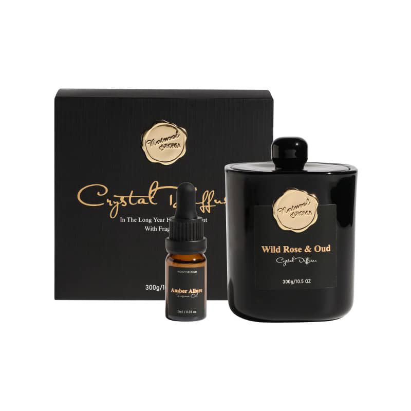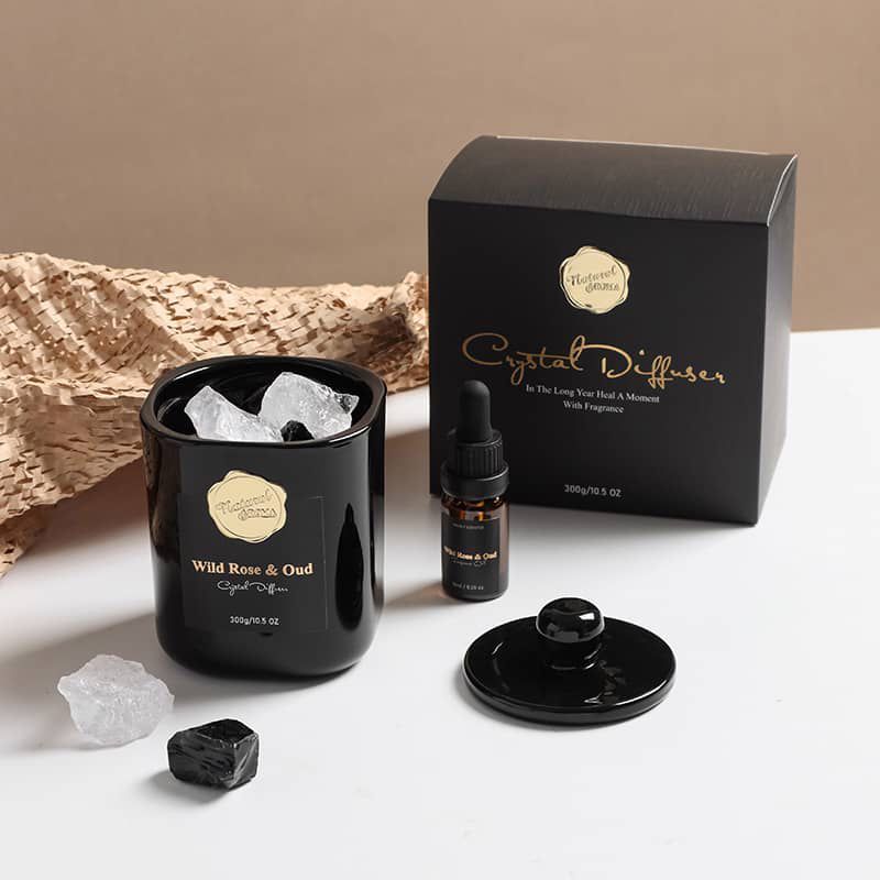 Elevate your interior with the exotic mystery of Black Oud Scented Crystal Stones, housed in a stunning glossy black glass jar that doubles as a bold decor piece. Infused with the rich, smoky elegance of oud, these fragrance stones slowly release scent into the air ;no heat, no flame, just pure aromatic sophistication.