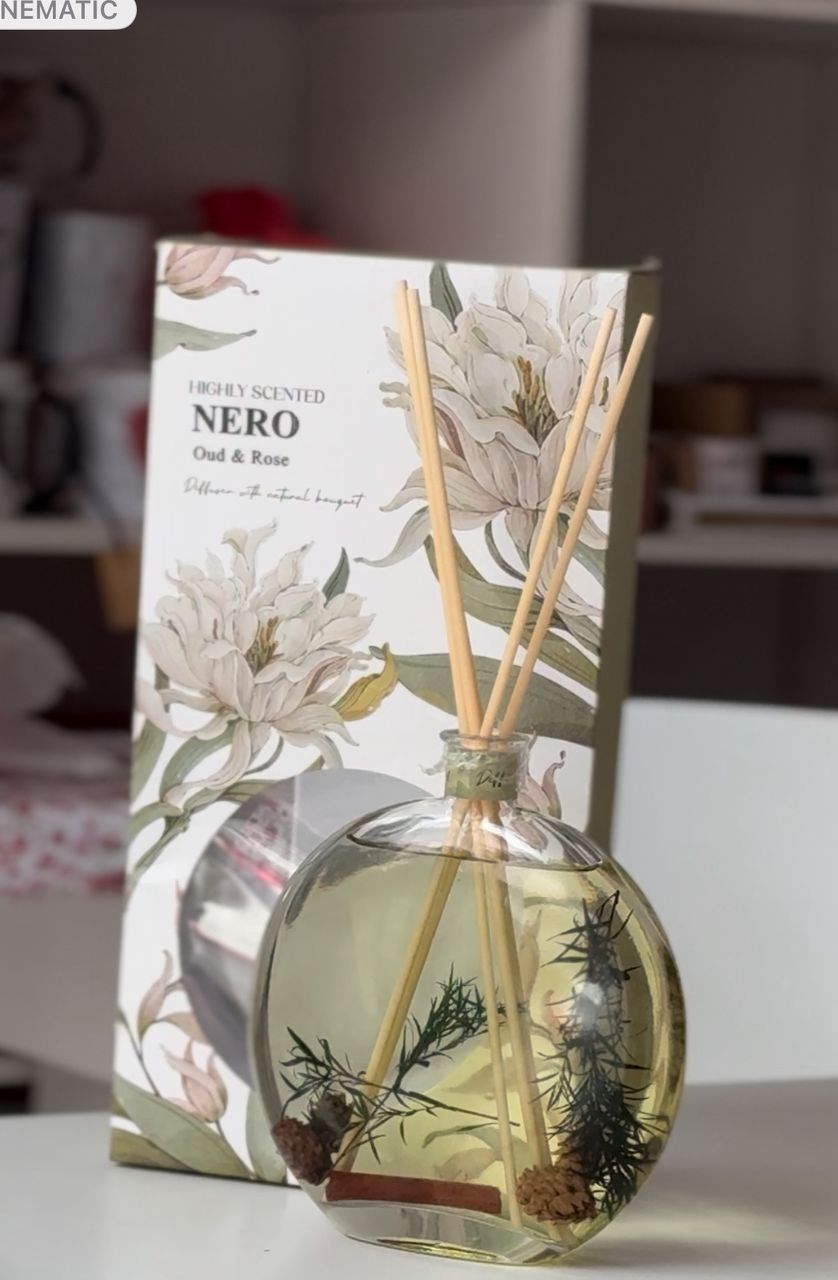 Crafted with 6 premium fiber reeds that require no flipping, Nero delivers a long-lasting and intense fragrance throw. The powerful blend of oud and rose creates a rich, sophisticated scent profile warm, inviting, and perfect for both daily living and festive occasions.