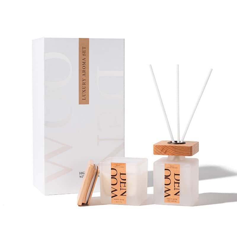 Discover understated luxury with our White Musk Reed Diffuser and Candle Gift Set, thoughtfully curated to elevate your space and gifting moments. Packaged in sleek matte white glass jars with natural brown wooden lids, this elegant duo blends timeless design with a soft, powdery fragrance that soothes the senses.